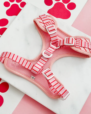 Get ready to make hearts skip a beat! This Candy Stripe harness is perfect for sweet dogs who love their daily adventures. Whether you're strolling through the park or celebrating love all year long, this playful harness is sure to earn compliments from every dog lover you meet.