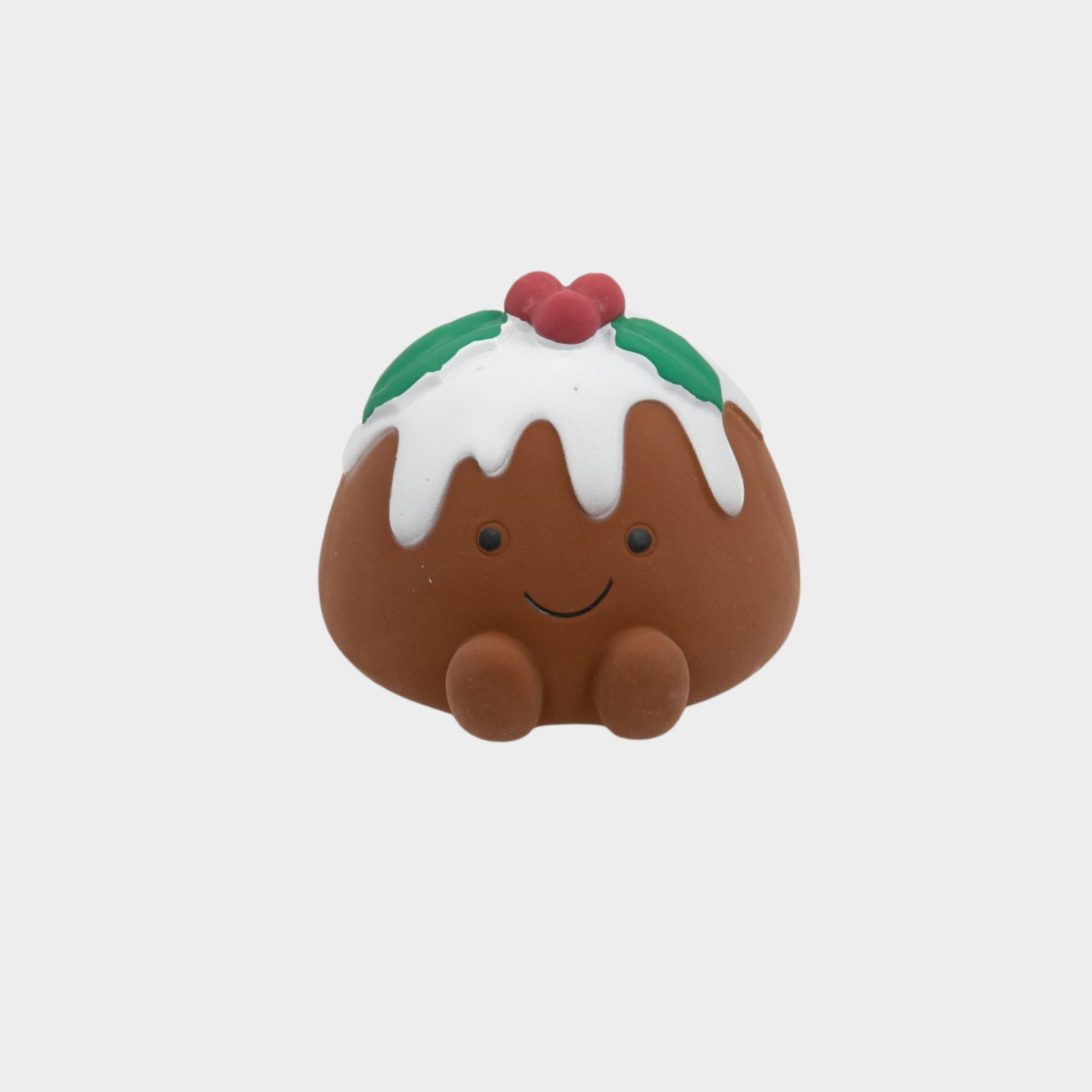 • Chrissie Christmas Pudding Latex Dog Toy – Made from high-quality latex with a built-in squeaker and an adorable smiley face, Chrissie is perfect for fetch, chew, or solo playtime.